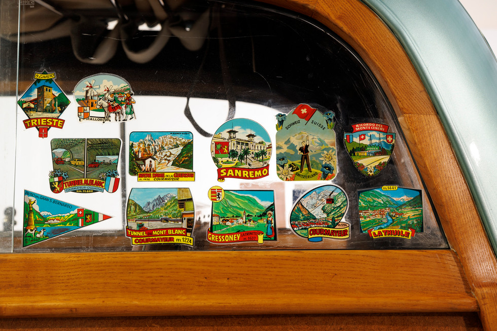 Fiat Topolino 500 C Giardinetta Legno - Esemplare restaurato - Targhe Torino e documenti originali - Matching numbers - Vettura dotata di molti accessori dell'epoca come l'antifurto sulla leva del cambio, il parasudore per l'autista, il fregio sul cofano anteriore - Perfettamente funzionante e revisionato | Fiat Topolino 500 C Giardinetta Wood - Restored example - Torino plates and original documents - Matching numbers - Vehicle equipped with many period accessories such as the gear lever lock, driver’s sweat guard, and the emblem on the front hood - Perfectly working and serviced |